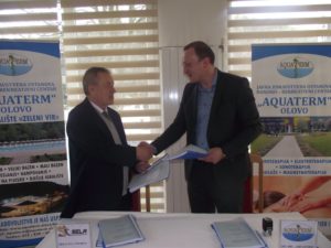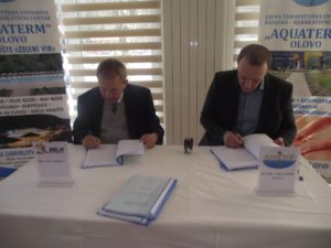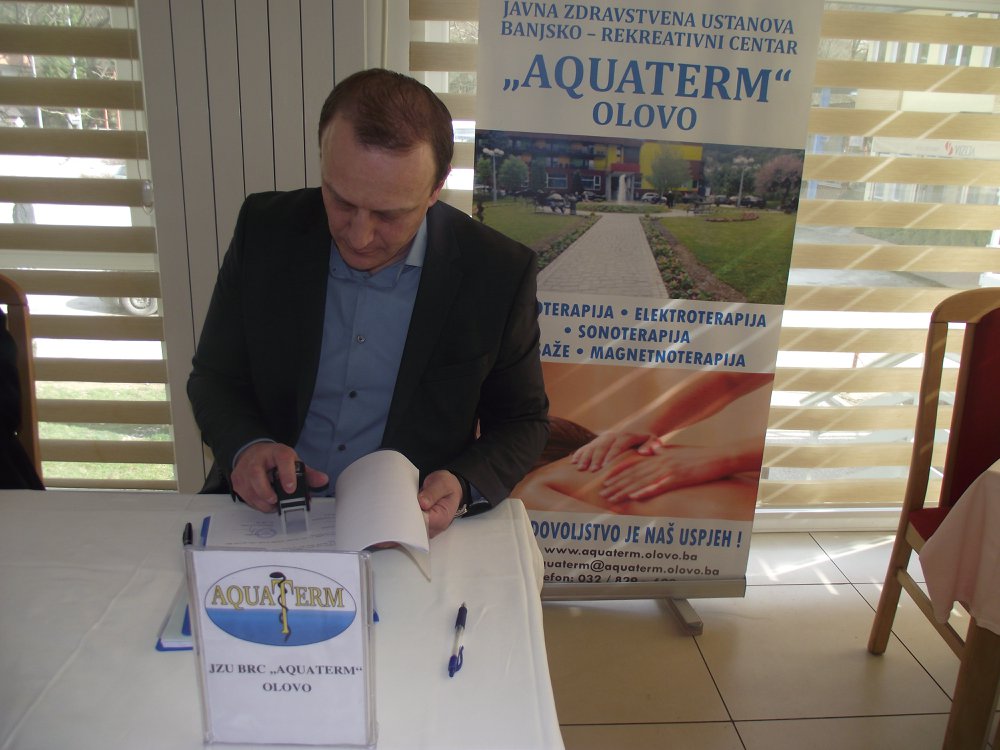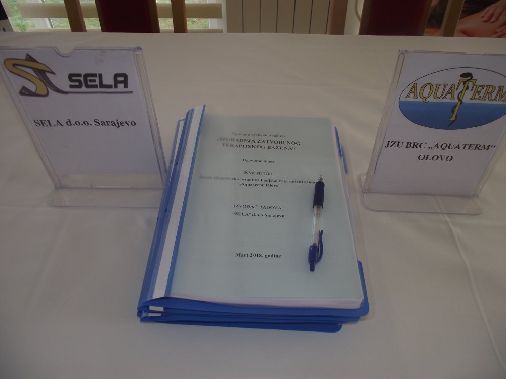 Direktor JZU BRC „Aquaterm“ Olovo Senad Selimović i direktor preduzeca „SELA“ d.o.o Sarajevo Sead Tutić danas su u Olovu potpisali ugovor o realizaciji projekta izgradnje zatvorenog terapijskog bazena, uz novo proširenje i smještajnih kapaciteta „Aquaterma“. Nakon ispunjavanja svih administrativnih pretpostavki, te nakon provedene tenderske procedure to praktično označava i zvaničan početak radova na ovom, za BRC, ali i cijelu općinu Olovo najznačajnijem poslijeratnom investicijskom iskoraku. Govoreči za naš Radio direktor Selimović kazao je da će ovaj projekat, vrijednosti 2,5 miliona KM, bez sumnje olovsku banju i našu JZU još snažnije pozicionirati kao lidera banjskog turizmu u BiH. Svoje zadovoljstvo potpisivanjem ovog značajnog ugovora nije krio ni Sead Tutić direktor sarajevskog preduzeća „SELA“ izražavajući uvjerenje da će projekat, u narednih 350 dana, koliko je to ugovorom predviđeno, biti uspješno i u potpunosti realizovan. To, kazao je za naš Radio, podrazumjeva kompletne građevinske, zanatske i instalacijske radove-praktično „Ključ u ruke“ Kako su nam to na licu mjesta pojasnili projekat predviđa gradnju i proširenje od postojećeg objekta ka desnoj obali rijeke Bioštice. Prema potpisanom ugovoru radovi kreću 02.aprila.2018, da bi naredne godine, u ovo doba, svjedočili njihovom završetku.