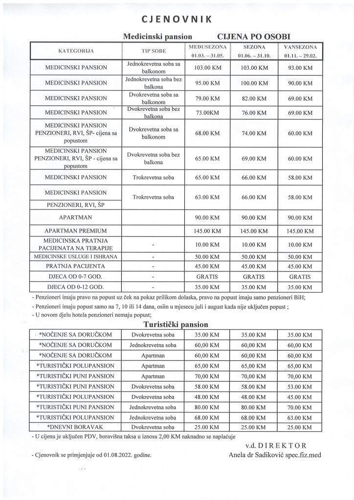 NOVI CJENOVNIK OD 01.08.2022. godine