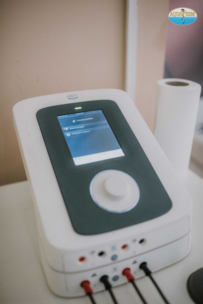 Elektroterapija je primjena struje u terapijske svrhe. Koristimo različite vrste struja, a izbor zavisi od njihovog djelovanja i efekta koji želimo postići. Procedura se sastoji u postavljanju elektroda obloženih sunđerom na određeni dio tijela. Ova terapija je potpuno bezbolna, klijent osjeća samo blago peckanje po koži na mjestu gdje je postavljena elektroda.